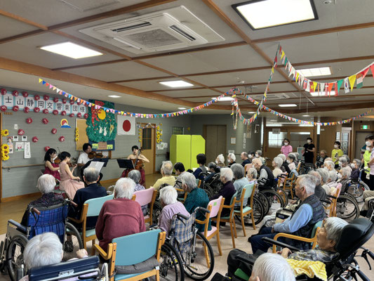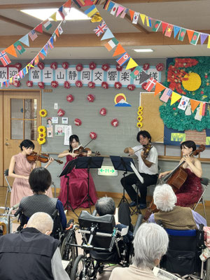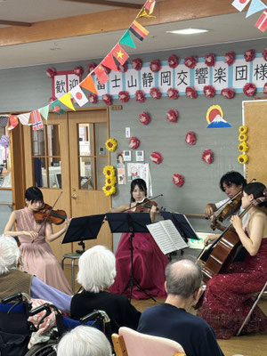 静岡県で唯一の常設プロオーケストラとなり、近くでプロの生の演奏を聞かせていただきました。とってもいい音色で感動しました。誰もが聞いた事のある曲で、利用者様も口ずさんでしまうような選曲をして下さり、とてもいい時間を過ごすことができました。感動しました!