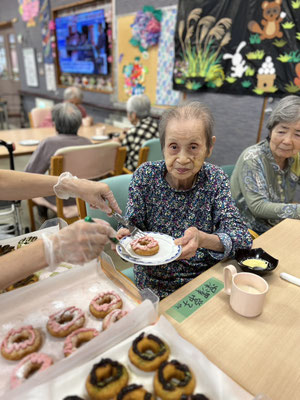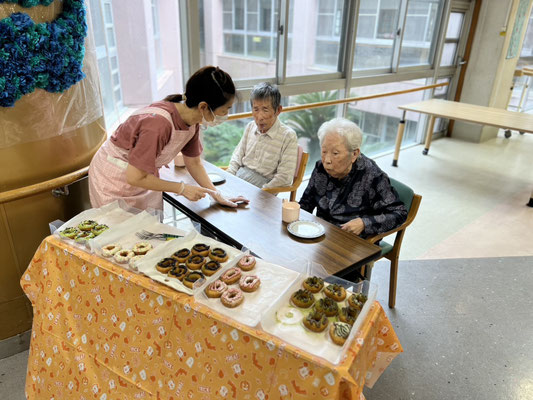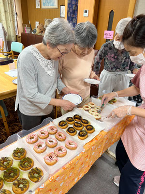 本日のメニューは「ドーナツ」です!色とりどりカラフルなドーナツが並びとっても美味しそうで、どれを食べようか皆さん悩まれながら選んでました。