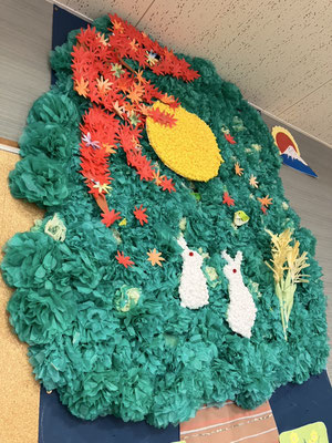 秋の壁飾りの前で、、記念撮影📷