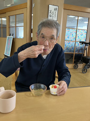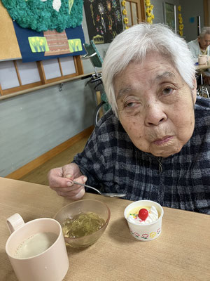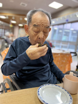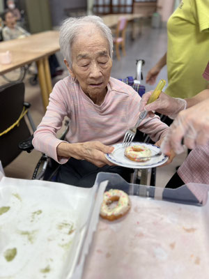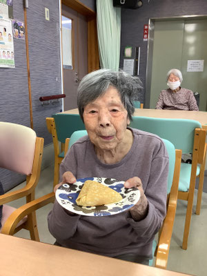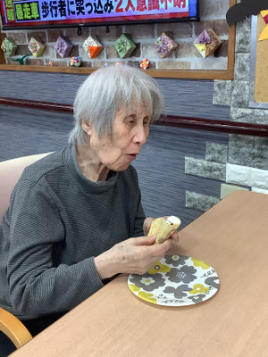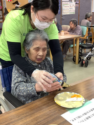 2階フロアでは、豚汁とおにぎりを利用者様と一緒に作り、昼食で食べました。デザートは合う合わないは別として、ケーキをお出ししました。