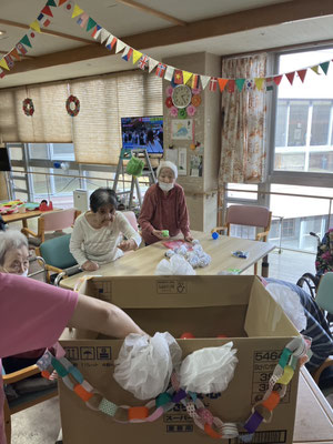 2月の誕生会の様子と壁飾りの作成風景です。