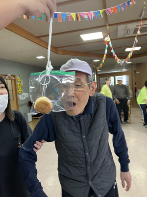 豆を掴むゲームを行いました。