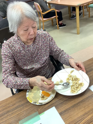 なかなか皆さん手先が器用です。時には口の中に入ってしまう事も💦