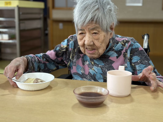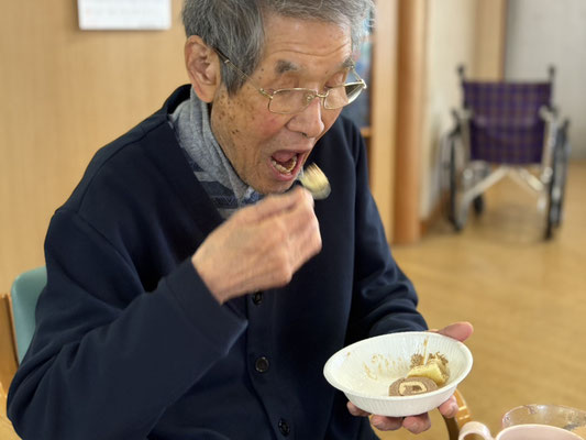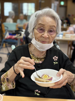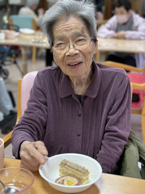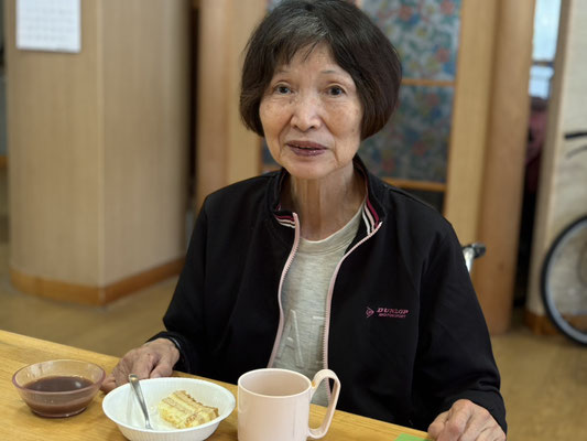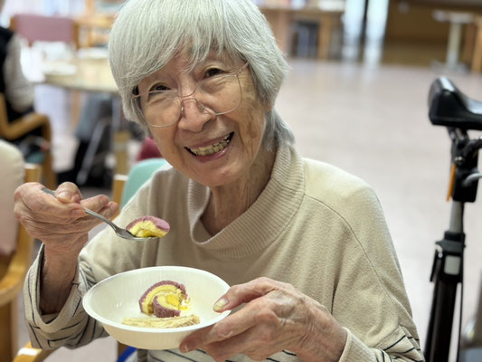 2階フロアでは、豚汁とおにぎりを利用者様と一緒に作り、昼食で食べました。デザートは合う合わないは別として、ケーキをお出ししました。